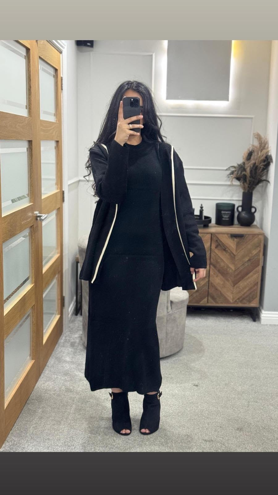 This refined two-piece dress is crafted from premium wool, combining comfort with timeless sophistication. Featuring a sleek silhouette and detachable belt tie, it can be styled fitted for a flattering look or worn relaxed for effortless elegance. Perfect for both professional settings and evening occasions, it’s a versatile staple designed to elevate any wardrobe